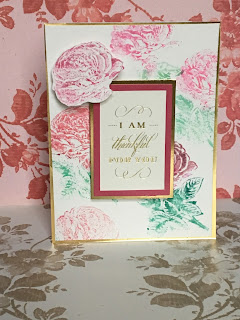Hello. On Monday I got in a minor car accident. As a result I have a sore neck and headache. On the positive side I have been spending a lot of time in my craftroom. Anna Griffins Treasury binder. I stamped a lot of roses, then made a matching background. It still looked a little plain so I added a gold border and a sentiment from another AG set.